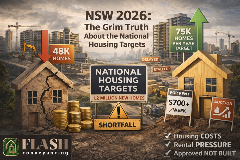 Under the National Housing Accord, Australia aims to deliver 1.2 million new homes over four years. While these national targets appear strong on paper, the reality on the ground—particularly in NSW—is far more concerning. Flash Conveyancing’s Julian and Renee are seeing these pressures first-hand. The growing supply gap is affecting buyers in multiple ways: increasing financial strain on purchases, forcing renters to reconsider entering the market, and pushing some buyers towards higher-risk investment decisions, alongside rising prices and rental pressures.